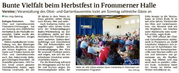 Die Akteure des Obst- und Gartenbauvereins Frommern Dürrwangen e.V. hatten am Sonntag, den 03.11.2019 alle Hände voll zu tun. Die Turn- und Festhalle Frommern drohte aus allen Nähten zu platzen, weil so viele Gäste das Herbstfest besuchten.