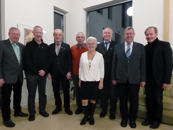 v. li.: Hans Stingel, Dieter Kopf, Herbert Vögele, Friedrich Halter, Emilie Stingel, Jörg Majer, der Vorsitzende Ulrich Ende und Günther Meinhold